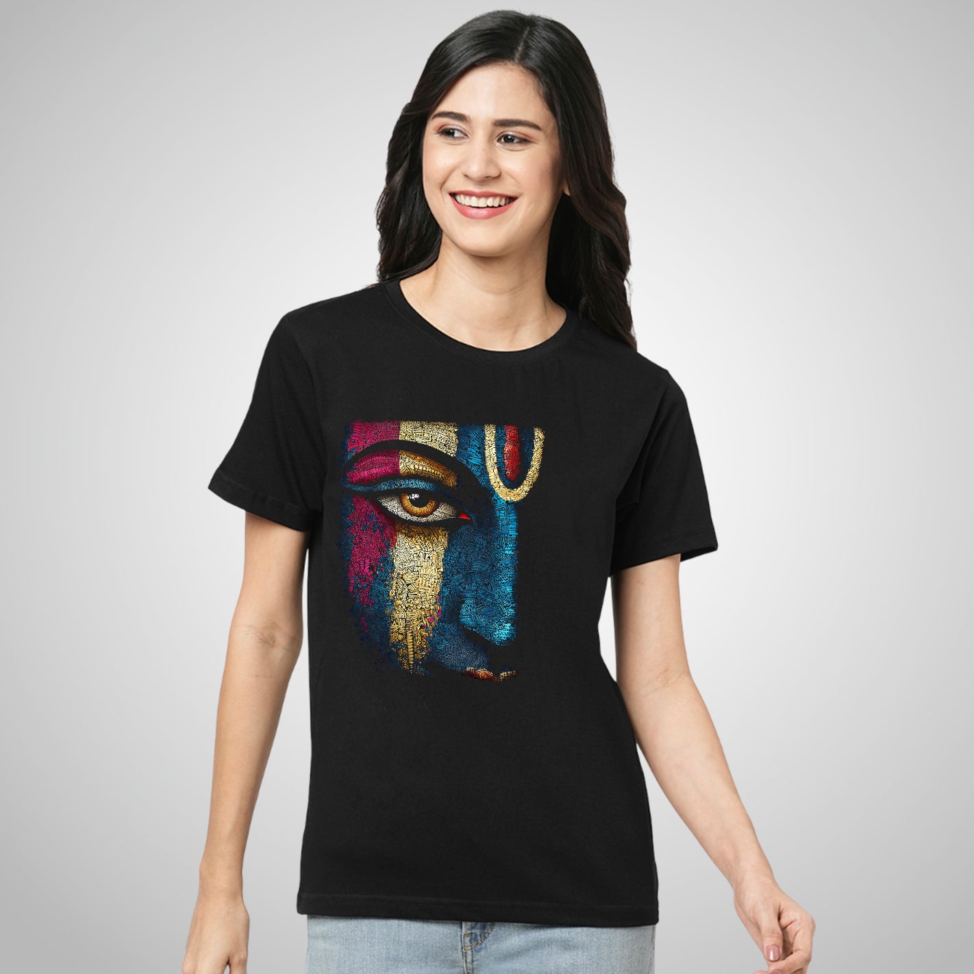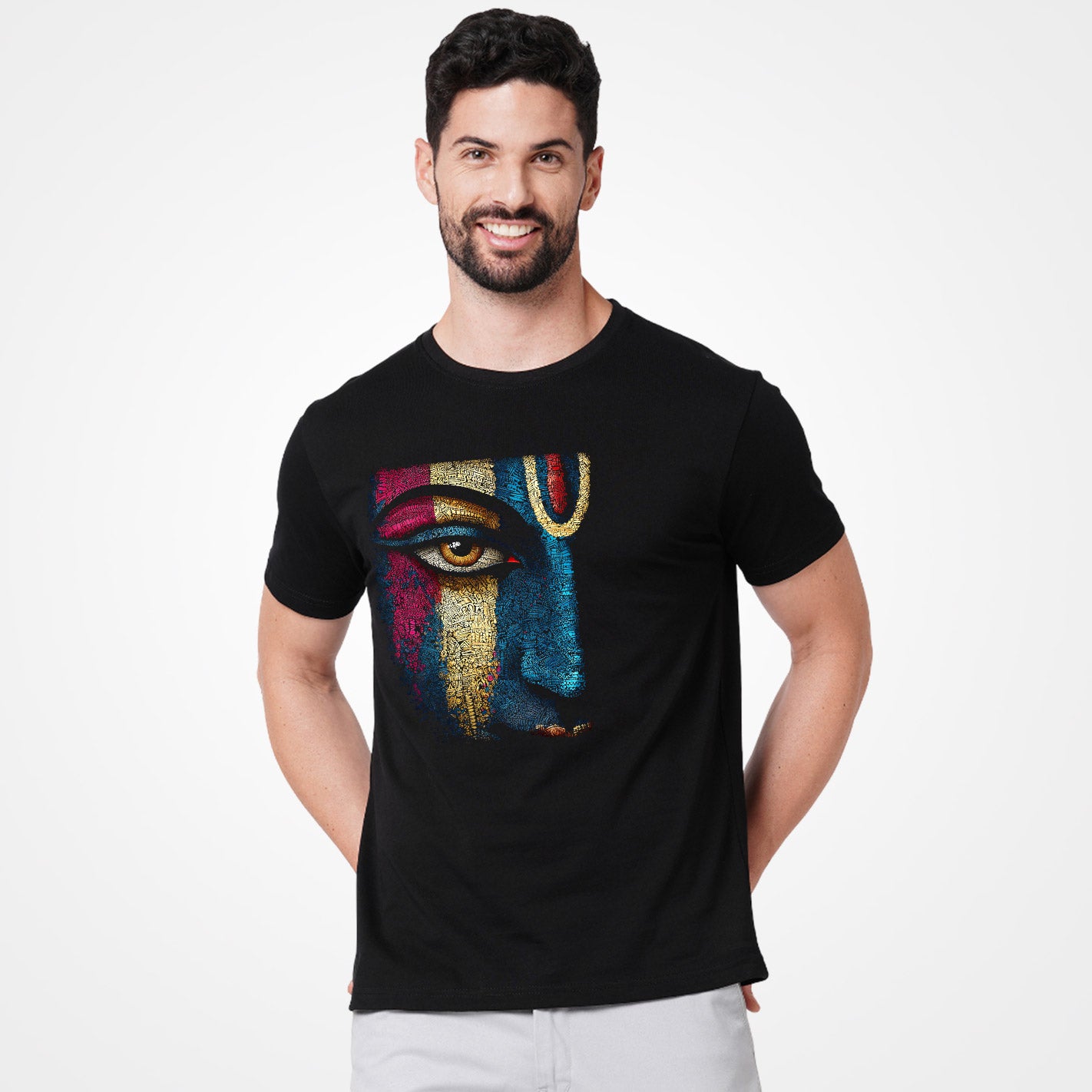 The Colourful Krishna T-Shirt celebrates divine joy through vibrant artistic expression. Featuring Lord Krishna in a lively, colorful design, it symbolizes love, harmony, and positivity. Made from soft, breathable fabric for all-day comfort, it blends spiritual inspiration with modern style. Perfect for festive occasions or everyday cultural wear.