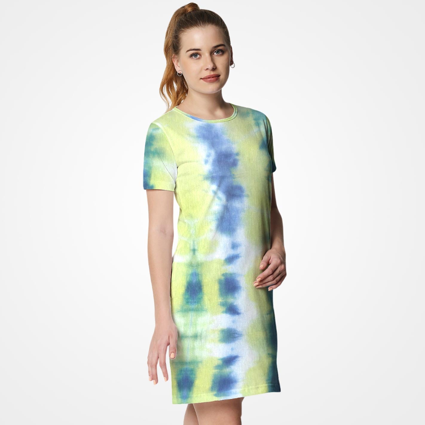 Bright, bold, and made to turn heads, the Yellow Neon TD T-Shirt Dress by WYO brings a splash of energetic color and effortless style to your wardrobe. With its vibrant tie-dye pattern and relaxed silhouette, it’s the perfect pick for sunny days, festivals, or anytime you want to stand out with confidence.